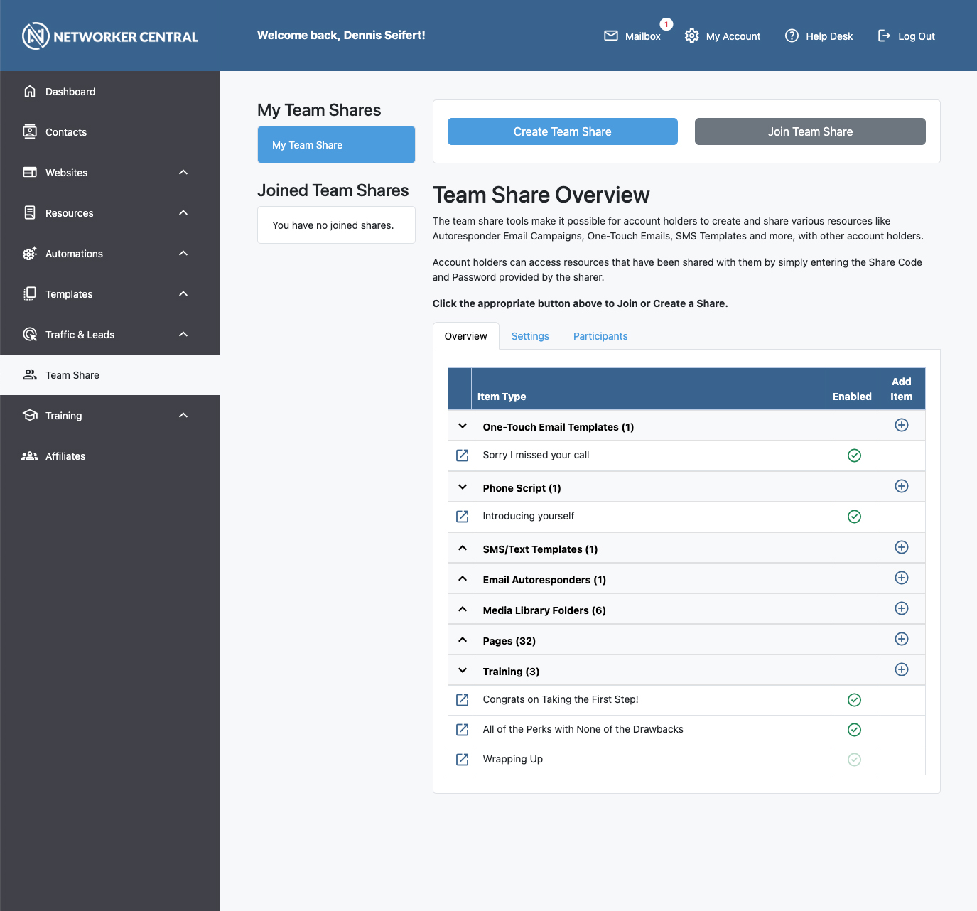 Networker Central's robust Team Sharing features enable effortless replication of successful strategies among team members. You have the flexibility to create and share any or all of the following:
